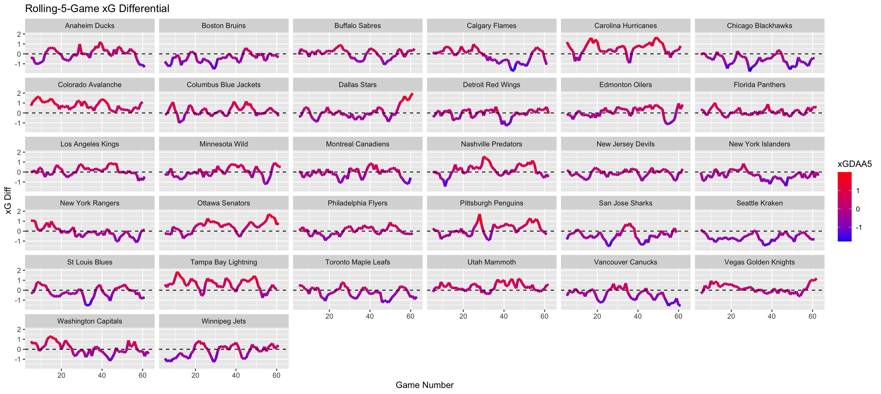 A huge spike over the last ten games for Dallas’s xG Differential at 5v5.