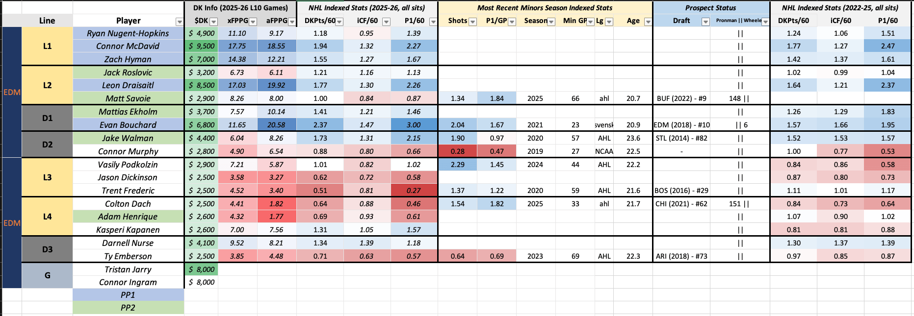MOODS’ DUDES: Connor McDavid ($9500), Leon Draisaitl ($8500)