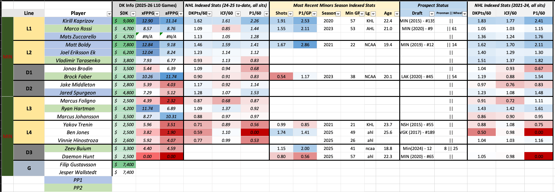 MOODS’ DUDES: Kirill Kaprizov ($9000), Matt Boldy ($7800), Mats Zuccarello ($4700)
