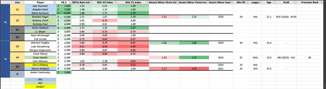 There’s not much outside of that top line, as L2 is all PP2 correlated but Hagel does not get the anticipated PP1 boost, based on the latest PP configuration we’re seeing. Cirelli and Paul are DFS dead-zones, and Carolina is not a matchup to speculate on depth explosions from shallow teams.