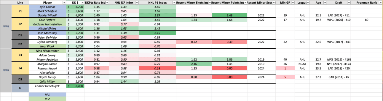 Fresh off a 6-0 drubbing of Edmonton, the matchup gets a whole lot easier on Friday. The pricing remains as startlingly cheap now as it was then, and considering the matchup is significantly better, the slate has half as many games, and there are none of McDavid, MacKinnon, or Matthews to lead us into stars and scrubs, I congratulate you on finding your chalk of the night. Don’t overthink it, Connor-Scheifele-Vilardi are a great stack, and Morrissey on the back-end fits with any build.