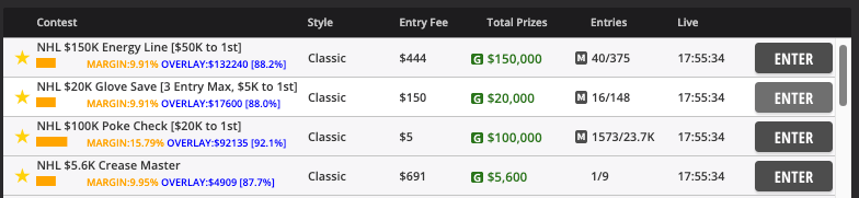 Let’s dive in to Wednesday’s slate, with $50k up for grabs in the $444 and $20k in the $5. Contests are juiced for the next couple weeks, so let’s run hot early: