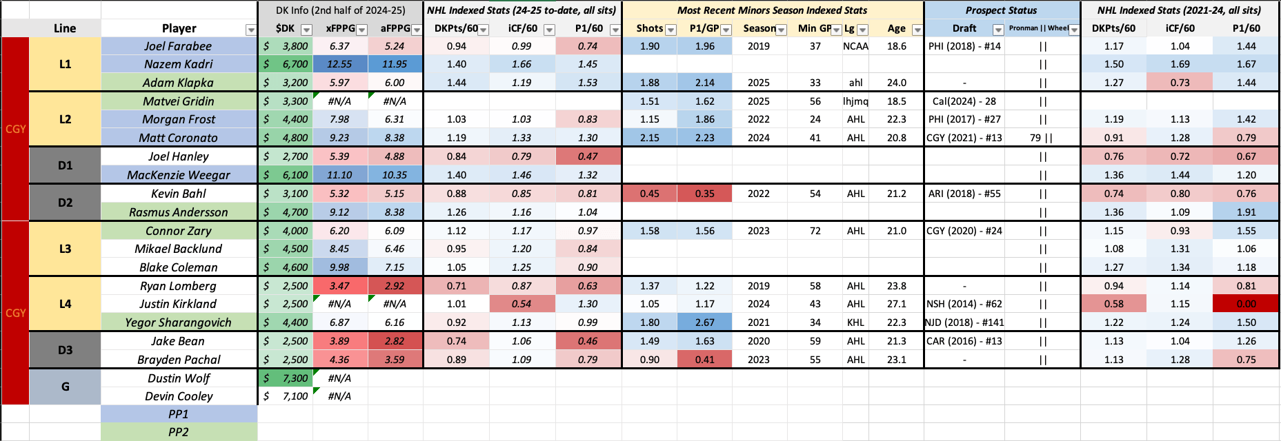 Joel Farabee looks to be the Huberdeau replacement as Huberdeau recovers from injury, and I simply cannot in good faith recommend a single Calgary piece that is reliant on Joel Farabee to be competent on the PP.