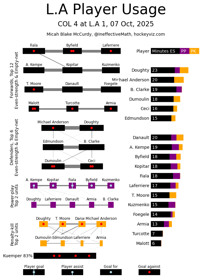 I thought they handled themselves fairly well against Colorado in a 4-1 loss. It was a pretty dispiriting offensive output, but the final ten minutes were… spirited, and were spearheaded by one Mr. Brandt Clarke, who for my money was the Kings’ best player for most of the night, and certainly the most involved.