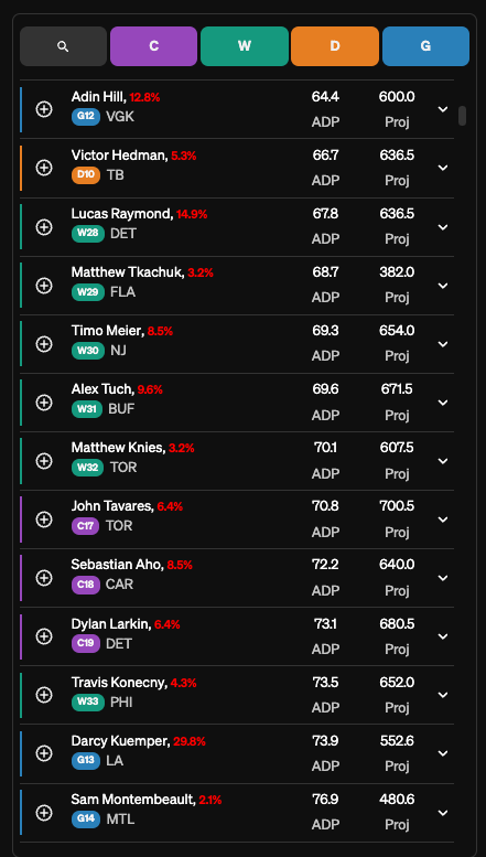 Washington before Ovi seemed certifiably human/injured in the preseason was a common target, looking something like Ovi-Wilson-Defenseman (Chychrun or Carlson), with the occasional other piece. I have cooled on Ovi a good bit, but still want a decent chunk of him. After all, he’s the only person on earth literally born to score fantasy points. After limited preseason watching, I have an additional concern, that being that Ryan Leonard takes a massive step and makes both Cs and McMichael irrelevant as far as the PP and top six is concerned, and will probably default to minis of Washington going forward. I really like Washington as a team, but think they do it more by committee this season than I did a month or two ago.