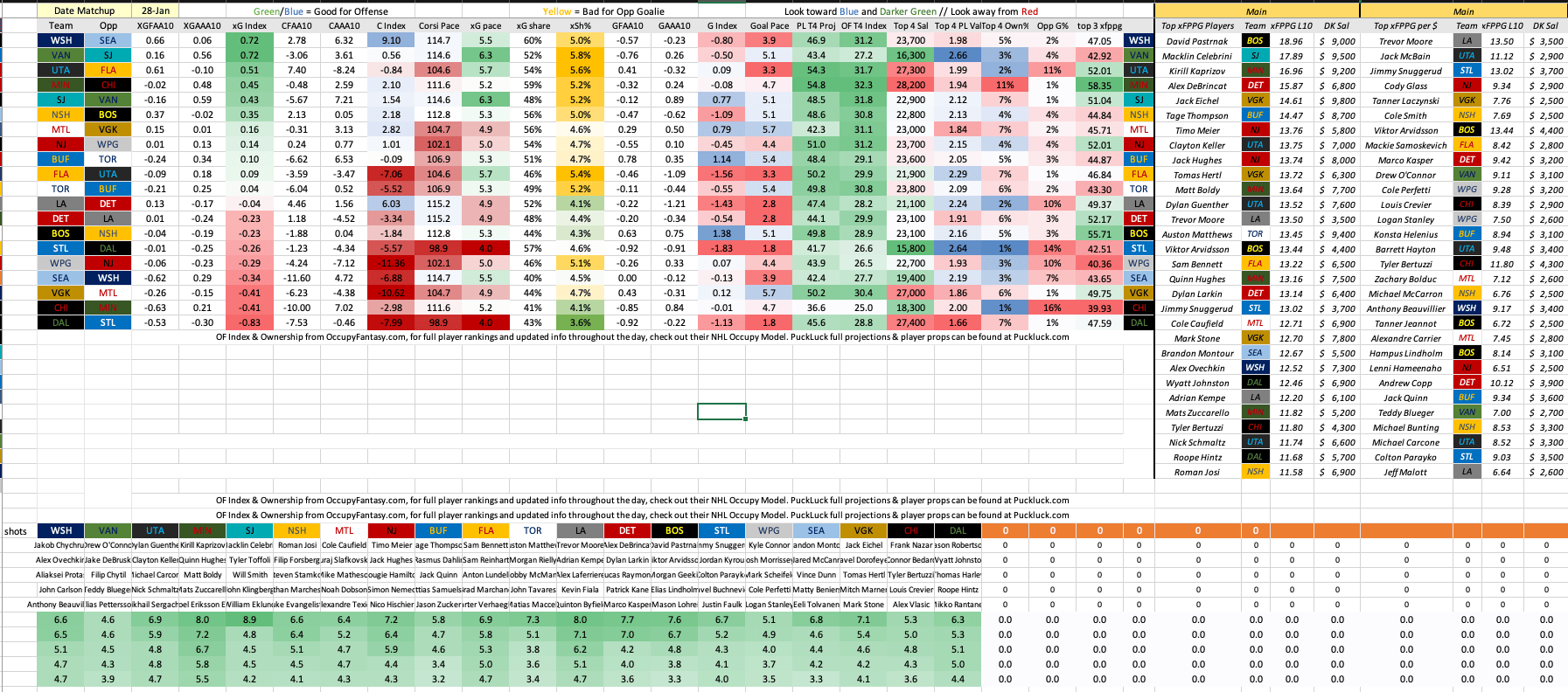 NSH-BOS, MTL-VGK, SEA-WSH, and LA-DET each had their own quirks that interested us: Boston loading up the top line, Vegas going full (unknown) blender after getting stomped this weekend, Washington doing who-the-fuck-knows-what with like five game-time decisions while Seattle has actually had a real top line for the first time it seems like ever, and LA-DET featuring very cheap players in elevated roles.